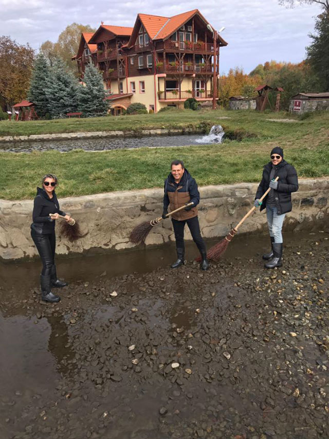 Înainte să-şi pună cizmele de cauciuc şi salopeta de pescar, Anamaria Prodan a dat cu mătura de nuiele. Desigur, nu singură. Nea Mărin şi LIviu Vârciu nu au lăsat-o la greu pe sexy-impresară.