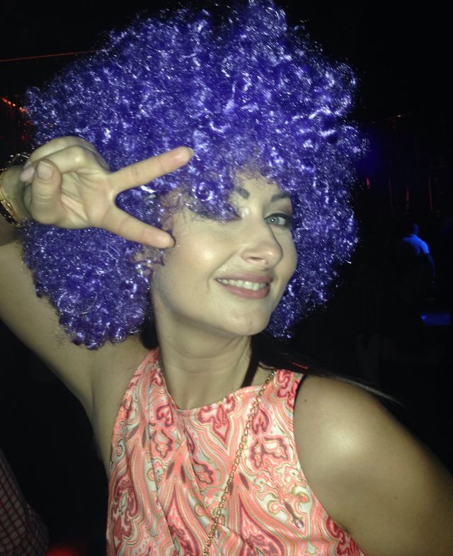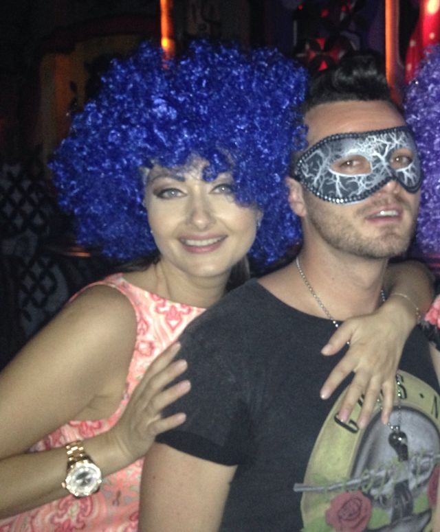 Îmbrăcată banal, cu o rochiţă de vară, la care a accesorizat un ceas de mii de euro, Gabriele Cristea şi-a scot ţinuta din anonimat cu o perucă albastră, pe care a ales să o poarte pe cap! De cealaltă parte, tinerelul ei partener a optat pentru o mască de bal mascat.
