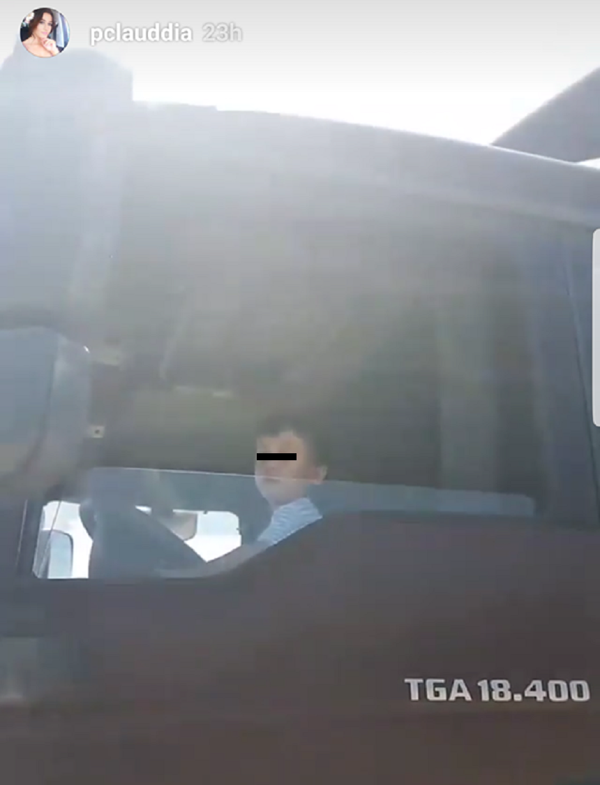 Claudia Pătraşcanu a postat în mediul online astăzi o fotografie cu fiul său care este la volanul unui tir. Gabriel este foarte încântat şi este numai un zâmbet. Mama sa l-a surpins de pe trotuar, iar el stă singur în maşină. Motorul nu este pornit, dar cu toate acestea băieţelul stă cu mâinile pe volan.