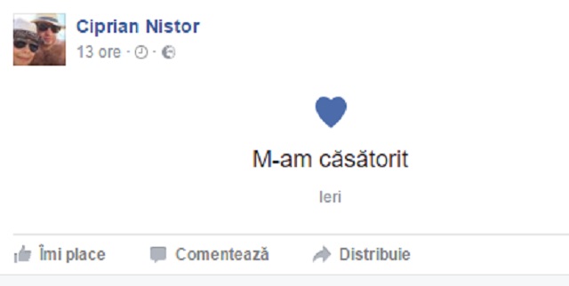 Ciprian Nistor încalcă legea din dragoste. Milionarul puşcăriaş a anunţat, public, pe Facebook, că este căsătorit cu Laurette. Chiar dacă nu are voie la internet în închisoare, bărbatul şi-a schimbat statusul pe Facebook.