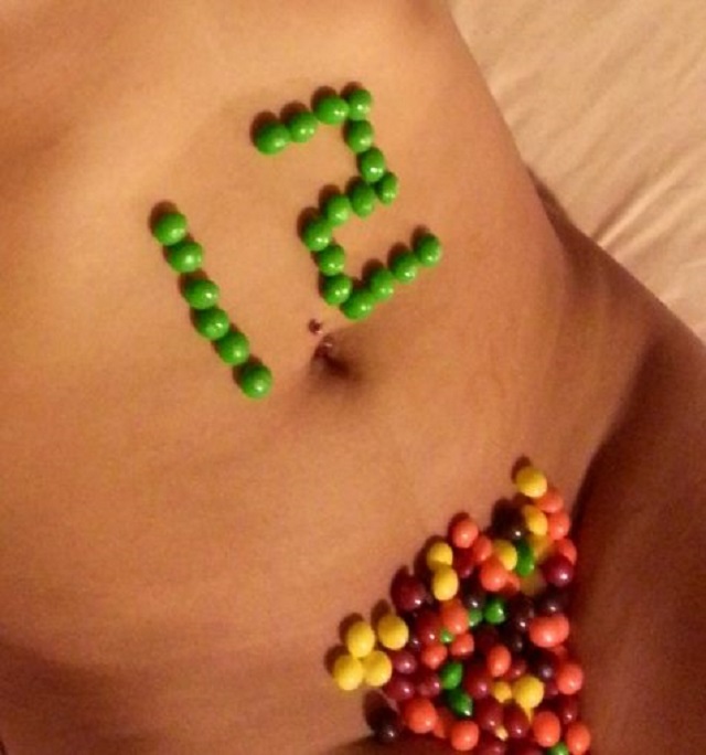Femeia s-a dezbrăcat de secrete, s-a pozat în pat şi şi-a pus în zona intimă multe bomboane colorate. Bărbaţii cu siguranţă sunt încântaţi să mănânce bomboanele, însă per ansamblu imaginile cu ea goală ne lasă un gust amar.