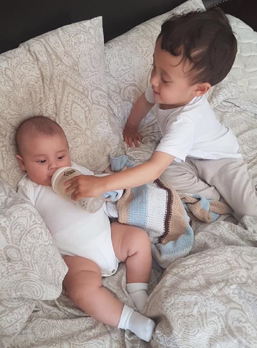 Cântăreaţa nu ratează nicio ocazie să se mândrească cu cei doi băieţi ai săi, Gabriel şi Nicholas. Într-o imagine publicată de Claudia, băieţelul ei cel mare are grijă de frăţiorul lui, hrănindu-l cu biberonul.