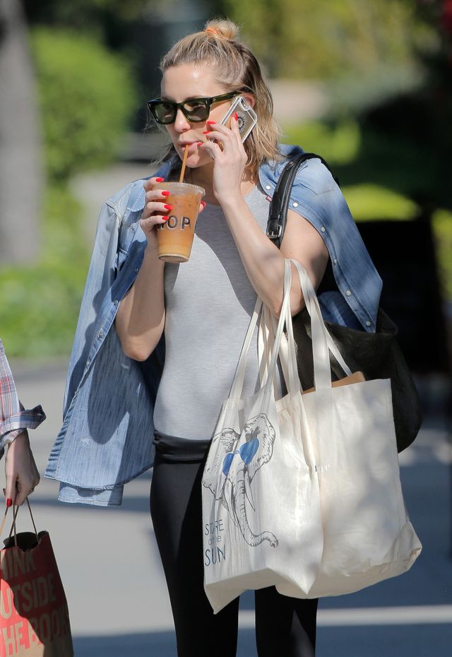În imagini, o puteţi vedea pe Kate Hudson în timp ce vorbea la telefon şi sorbea dintr-un suc. Vedeta avea părul nearanjat, prins în coc şi era îmbrăcată în haine sportive. Mai mult decât atât, Kate avea puţină burtă.