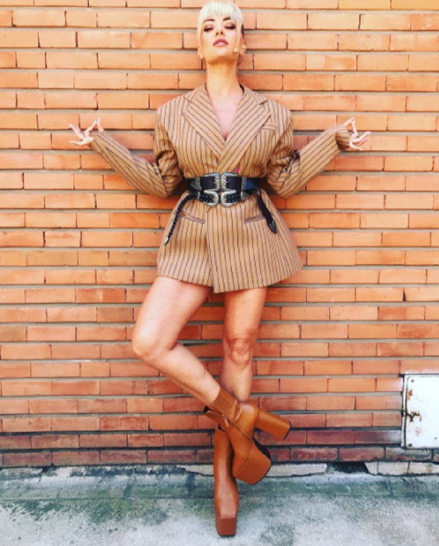 În privinţa stilului vestimentar, Delia a îmbrăcat o rochie sacou, pe nuanţe de maro cu o pereche de cizme de aceeaşi culoare. Are două centuri în talie, acestea fiind singurele accesorii.
