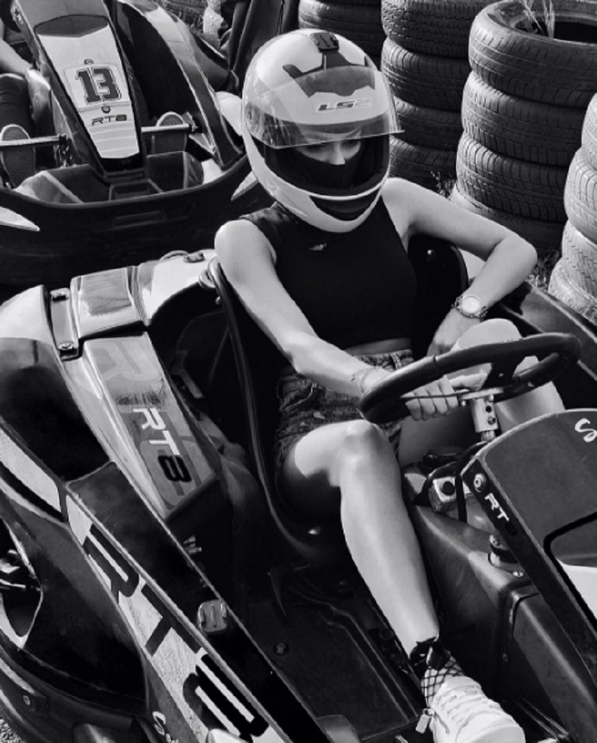 După această schimbare, vedeta a decis să practice şi un sport preferat de obicei de către băieţi: kartingul. Vedeta a postat o fotografie dintr-o maşină de acest gen . Apare îmbrăcată destul de sexy, fiind concentrată la volan.