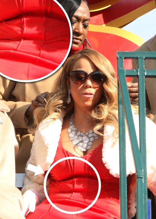 "Lady in red", Mariah a fost pusă în dificultate şi de ţinută, "colăceii" încercând să "respire" prin materialul băţos.