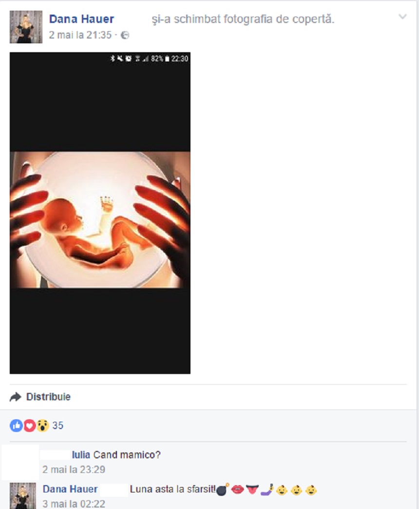 Vestea că Dana Hauer este însărcinată a fost ceva neaşteptat, dar toţi fanii ei s-au bucurat. Vedeta a făcut vestea publică pe contul ei de socializare, iar acum a făcut anunţul mult aşteptat - mai are puţin şi naşte!