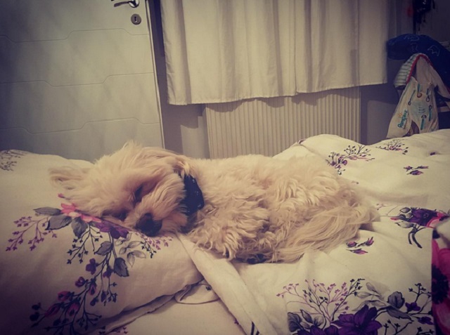 De data acesta, Adda şi-a fotografiat băieţelul, dar şi căţelul în acelaşi pat. Într-o poză apare ea cu copilul în braţe, aşezată pe patul care are aceeaşi lenjerie ca în imaginea în care apare căţelul tolănit în pat.