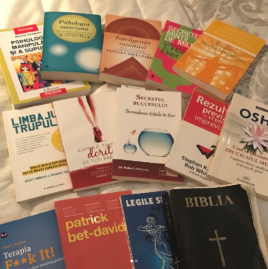 Vedeta a postat pe una dintre reţelele de socializare mai multe imagini în care apar carţi psihologie, Biblia şi altele motivaţionale.