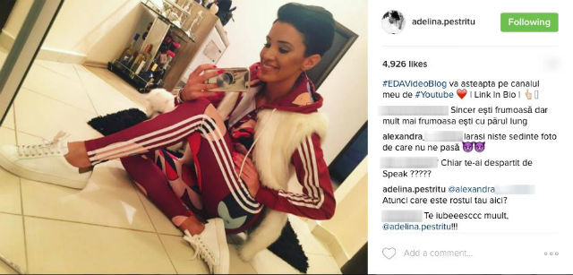 Deşi imediat a fost întrebată şi dacă e adevărat că s-a despărţit de Speak, Adelina Pestriţu i-a răspuns doar celei care a atacat-o pentru clipul pe care l-a postat, fără să ofere amănunte despre fostul iubit.