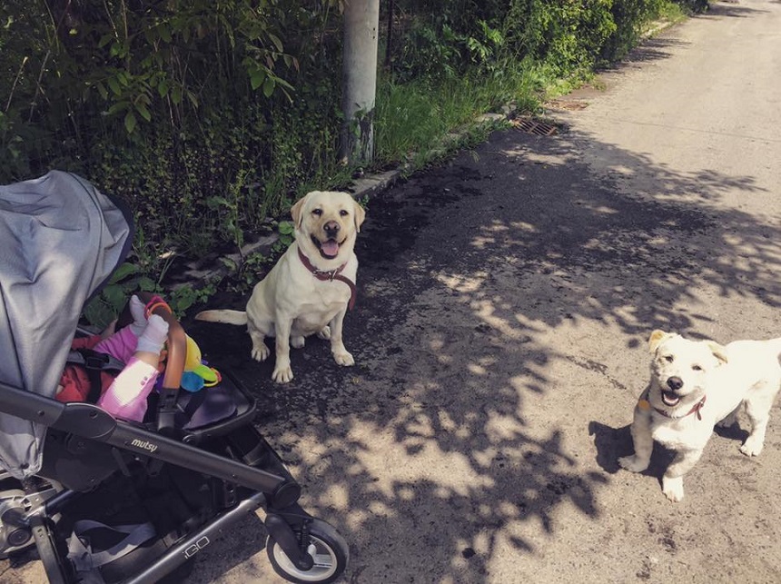 "Bãieţii mei cei frumosi au iesit la plimbare cu Ella Maya🍼🐶 #JackGrãsunu #BillutzãCrengutzã", s-a lăudat actorul pe contul său de socializare.