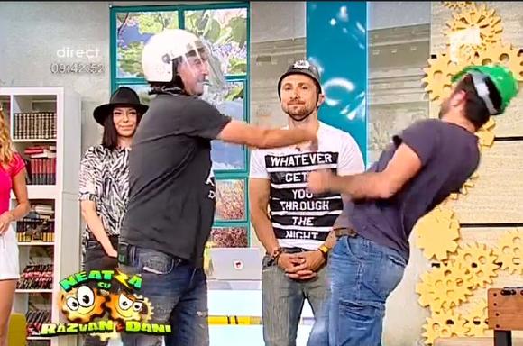 Telespectatorii emisiunii "Neatza cu Răzvan şi Dani" s-au amuzat copios marţi dimineaţă de echipa matinalului de la Antena 1. Matinalii au reprodus un filmuleţ care este viral pe internet, în care personajele se pălmuiesc peste faţă.