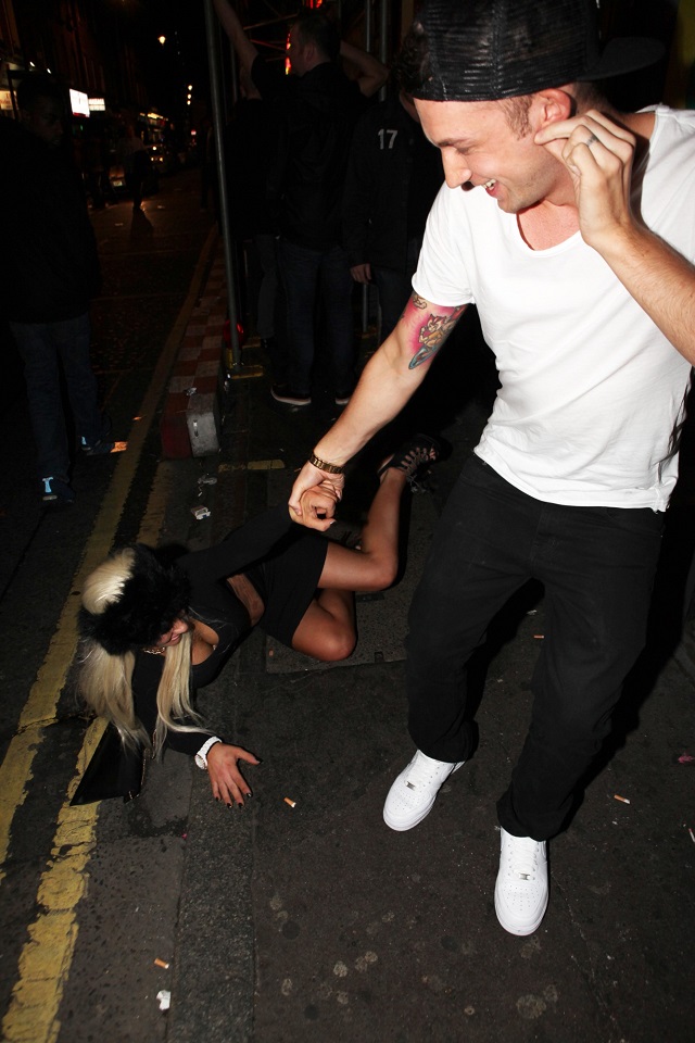 Momentul penibil a fost atunci când blonda s-a îmbătat atât de tare, încât nu s-a mai putut ţine pe propriile picioare şi s-a prăbuşit pe asfalt.