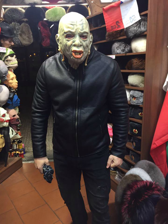 Plecat într-o vacanţă în Cehia, fostul fostbalist a fost la un magazin şi a probat o mască hidoasă care a stârnit numeroase reacţii pe pagina sa de socializare. După ce a postat fotografia, dinamovistul a anunţat-o pe fiica sa că aşa va veni acasă. Reacţia fetei lui nu a întârziat să apară: "Te rog să nu, mă terorizezi foarte bine şi fără mască".