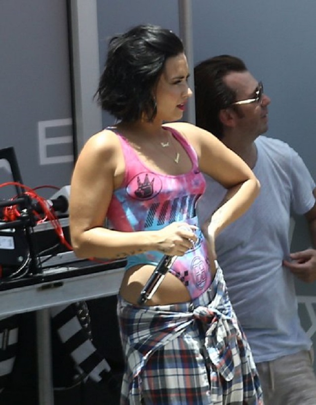 Demi Lovato a mai pus câteva kilograme în plus, iar asta se observă cu ochiul liber. Burta solistei s-a revărsat peste fustă, ceea ce au putut observa şi fanii care au venit la concert.