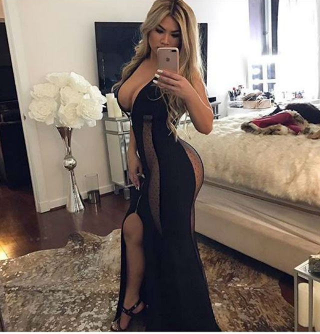 O rochie lungă neagră care a reuşit să-i acopere cât de cât zonele intime ale vedetei, dar fundul bombat al lui Jojo Babie a fost expus pentru ochii tuturor.