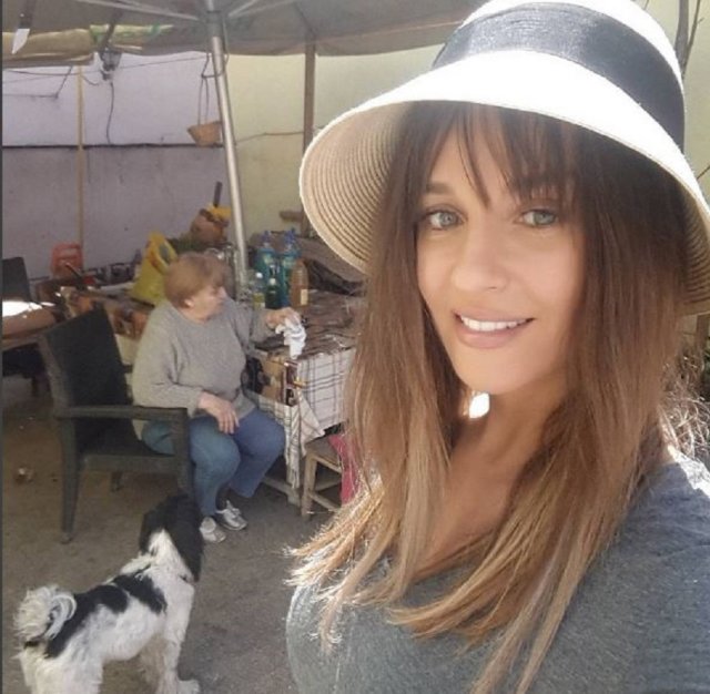 Vedeta și-a făcut un selfie în curte la mama ei. În spatele Taniei Budi se vede mama ei care stă la masă, dar și cățelul pe care îl are în curte.