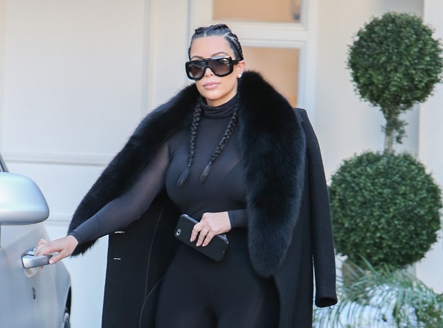 Îmbrăcată în colanţi negri şi top mulat şi transparent, Kim şKardashian şi-a oripilat fanii din Beverly Hills, California, acolo unde au fost surprinse imaginile inedite.