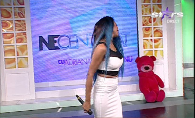 Cu această ocazie, s-au observat cu totul alte detalii. Costumul alb cu material transparent negru în zona bustului i-a descoperit sfârcurile, spre bucuria audinţei masculine.