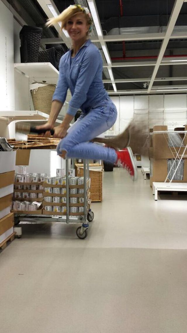 Aflată într-un magazin, Lora apare călare pe o mătură, la o înălţime considerabilă deasupra solului. Ipostaza este mai mult decât haioasă, fanii vedetei amuzându-se copios să o vadă astfel pe vedeta lor preferată.