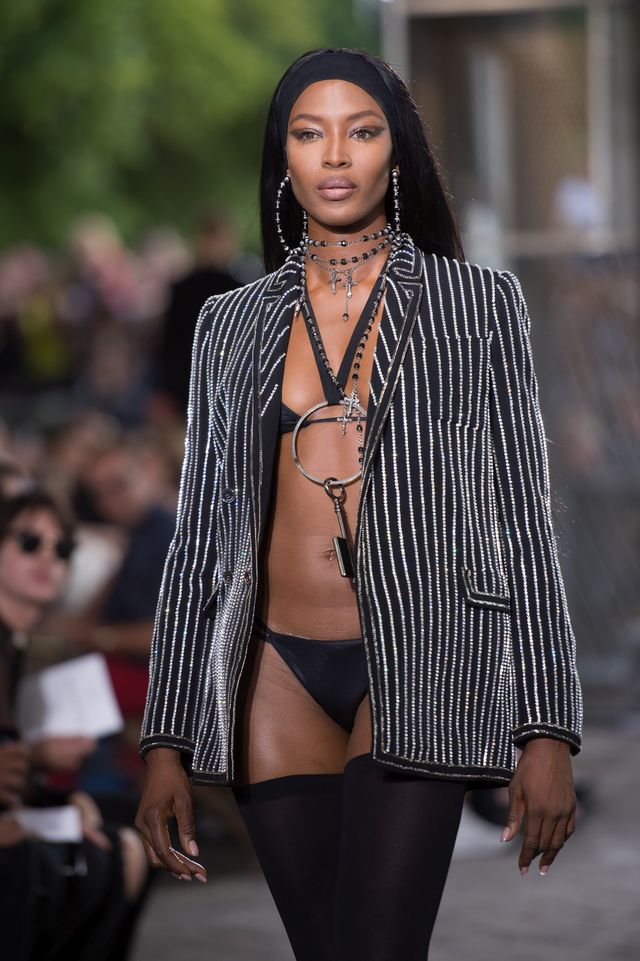 Naomi Campbell arată minunat la 45 de ani şi concurează cu succes pe podium alături de nume grele din tânăra generaţie. Modelul poate aprinde imaginaţia tuturor bărbaţilor cu modul în care se îmbracă.
