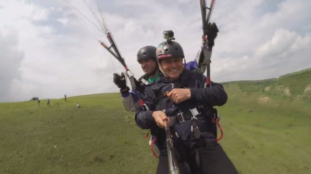 FOTO / Nea Mărin s-a apucat de sporturi extreme! A sărit cu parapanta!