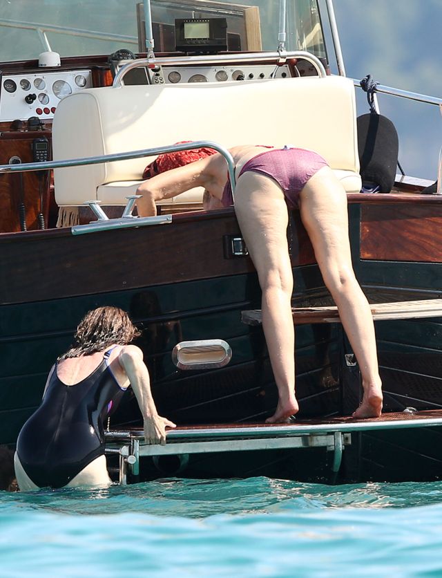 Jerry Hall, cunoscută pentru rolul ei din filmul Batman, a fost fotografiată într-o ipostază jenantă, în timp ce se afla alături de prieteni în vacanţă la Saint-Tropez.