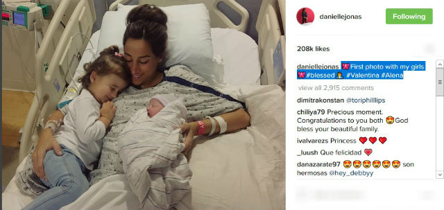 În prima imagine, soţia actorului Kevin Jonas apare în timp ce stă pe patul de spital, iar pe fiica sa cea mică o ţine în partea stângă, aproape de inimă, în timp ce Alena, care are doi anişori e în dreapta. Fotografia de album a fost însoţită de descrierea de mai jos.