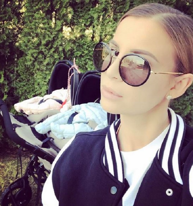 Vedeta a profitat de soarele de afară și a scos gemenii la plimbare în căruciorul dublu. Ca să marcheze începutul primăverii și să se simtă că este 1 Martie, Marina Dina a accesorizat căruciorul gemenilor cu un șnur de mărțișor.