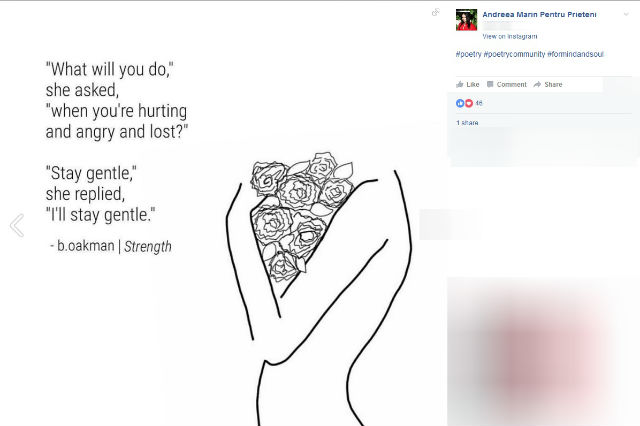 «Voi rămâne gingaşă.»)", e mesajul care apare în fotografia de mai jos.