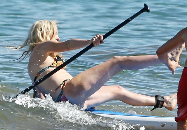 Realizatoarea TV a îmbrăcat un costum de baie format din două piese şi le-a arătat paparazzilor imagini de neuitat. Trecerea timpului şi-a făcut simţită prezenţa pe corpul vedetei, aşa că Shannon şi-a arătat formele deloc de invidiat când încerca să se dea cu placa. Atunci când s-a ridicat, blondina a luat o căzătură serioasă, pe care nu o va uita prea uşor, iar paparazzi au surprins-o cu picioarele desfăcute, fiind într-adevăr foarte haioasă.