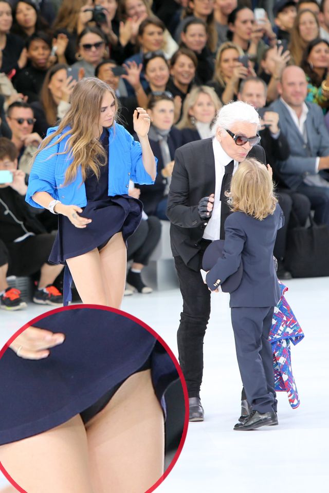 E frumoasă, apreciată în lumea modei şi total nonconformistă, Cara Delevingne a fost prezentă la celebrul eveniment la de Paris unde a reuşit să iasă în evidenţă după ce fusta extrem de scurtă pe care o purta pe podium s-a ridicat lăsând la vedere chiloţeii minusculi.