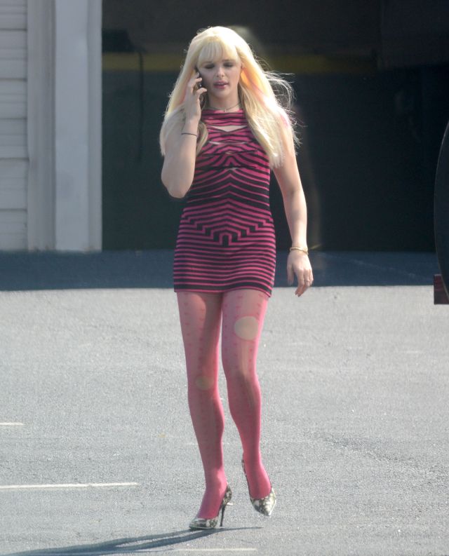 Actriţa a ieşit pe stradă, îmbrăcată într-o rochie roz şi o pereche de ciorapi rupţi, astfel încât trecătorii puteau să o confunde sigur cu o femeie a străzii.