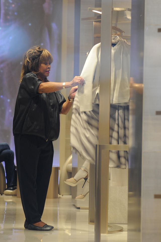 Îmbrpăcată într-o ţinută de culoare neagră, bluză şi pantaloni, şi cu o pereche de balerini în picioare, Tina Turner a mers pe jos în pas vioi, mai ceva ca o tânără de 20 de ani.