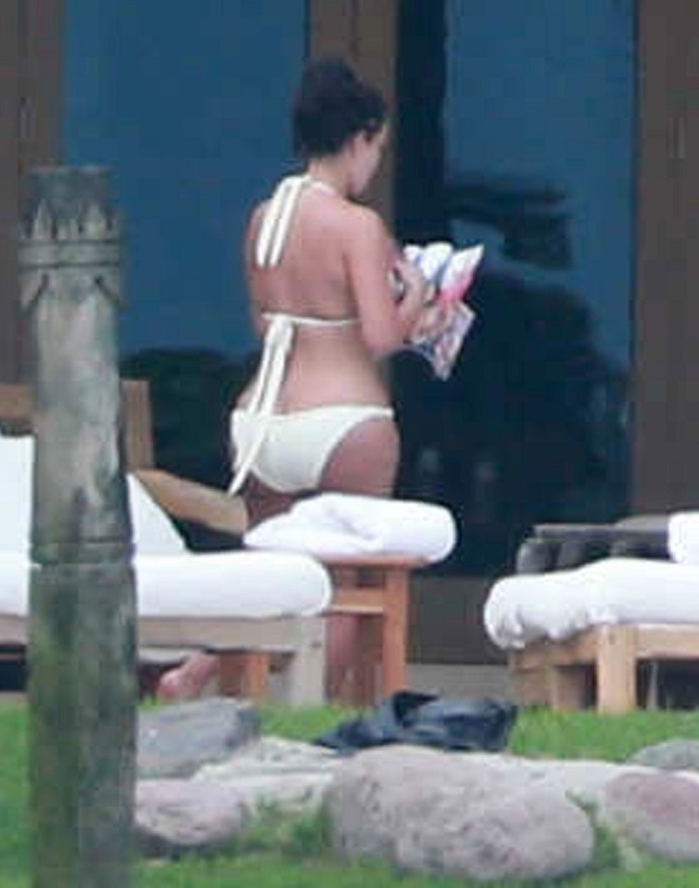 Kim Kardashian (33 de ani), aflată în Mexic într-o a doua "lună de miere", alături de sotul ei Kanye West (37), a fost surprinsă făcand plajă la o vilă privată din Punta Mita. Vedeta TV nu pare foarte relaxată, ba chiar încercă de fiecare dată când se ridică de pe şezlong să-şi ascundă posteriorul de obiectivele camerelor foto.