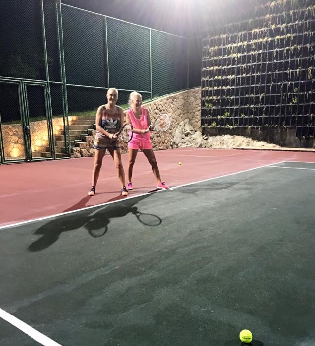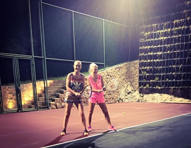 Spre deosebire de alte vedete, Vica nu s-a oprit în prima sală de fitness pe care a găsit-o ci s-a întâlnit cu niște prieteni pe un teren de tenis unde s-a distrat alături de fiul ei, Edan. Micuțul a stat departe de zgură, dar s-a amuzat cu un sac de box.