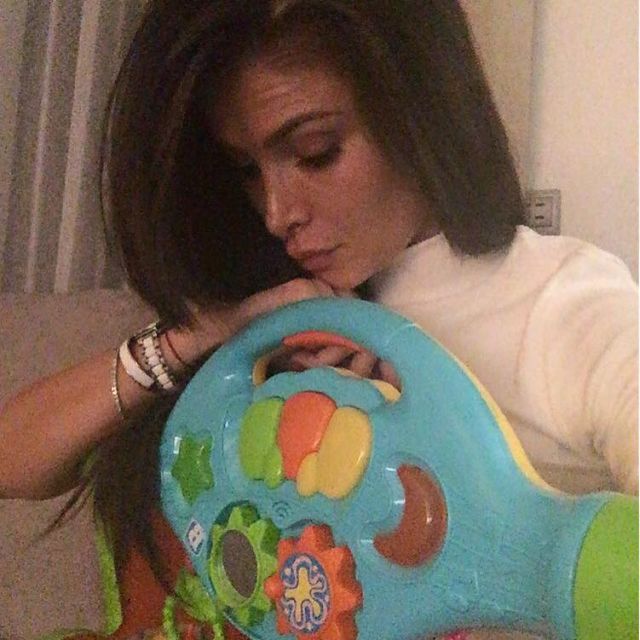 Fotografie emoţionantă! Alina Puşcaş se joacă cu jucăriile băieţelului ei