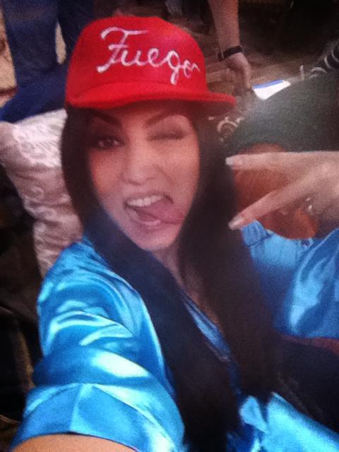 Actriţa şi-a postat pe contul de socializare o fotografie în care apare într-un capot albastru din satin şi o şapcă pe cap. Interesantă este însă inscripţia de pe elementul vestimentar. În loc să scrie "Cocaine and Caviar", cum e la modă, pe şapcă scrie Fuego. Cu siguranţă cântăreţul nu va fi prea încântat la vederea acestei ironii subtile.