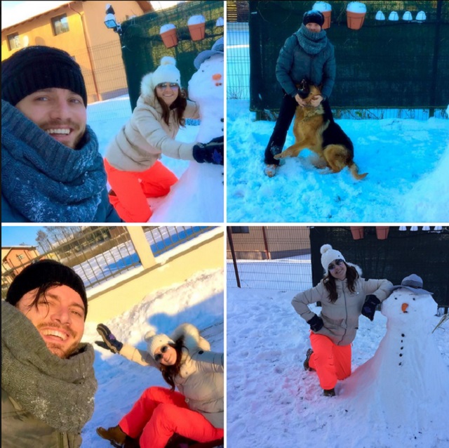 Gabriela Cristea şi Tavi Clonda au profitat la maximum de prima zăpadă serioasă din acest an. Cei doi soţi au ieşit în curte, s-au bulgărit, s-au jucat cu căţelul şi au construit un om de zăpadă. Toate momentele care le-au adus fericirea pe chip au fost surprinse cu aparatul de fotografiat şi împărtăşite cu prietenii virtuali.