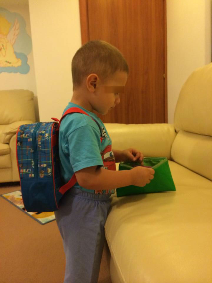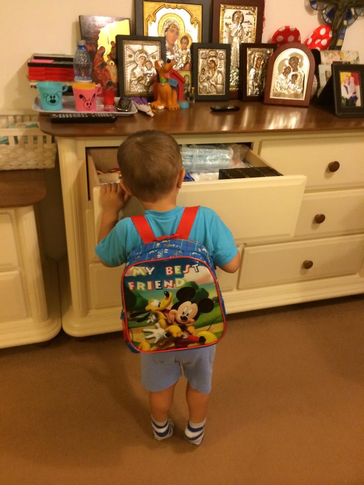Jurnalista l-a fotografiat imediat pe cel mic, entuziasmat să înceapă cursurile de grădiniţă de mâine, iar imaginile au fost împărtăşite cu cei dragi, de pe Facebook.