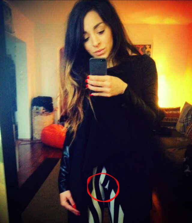 Ruby s-a pozat cu o pereche de colanţi în dungi albe şi negre care s-au aşezat cum nu trebuie pe zonele ei intime, astfel încât pare că sub ei vedeta ar ascunde un penis. Din păcate pentru cântăreaţă, fanii au observat imediat detaliul şi au râs de ea.