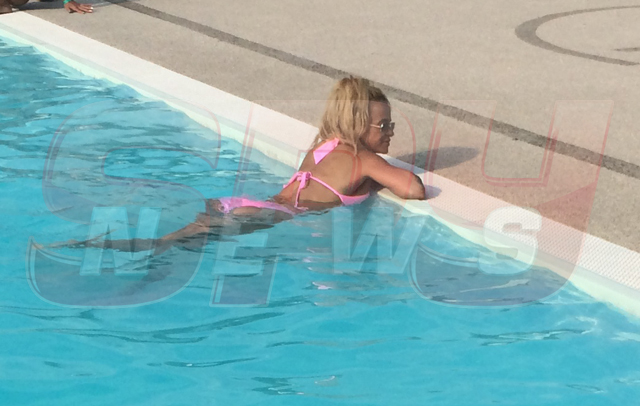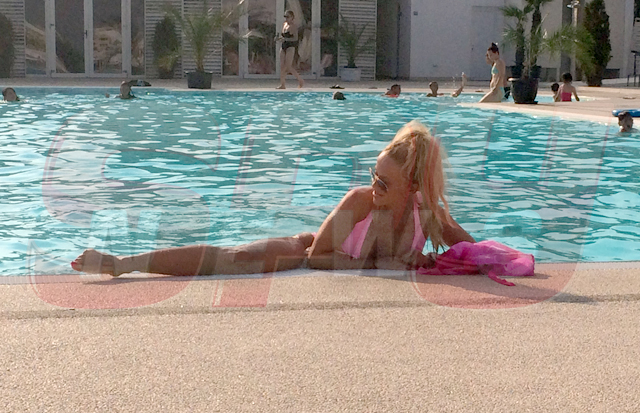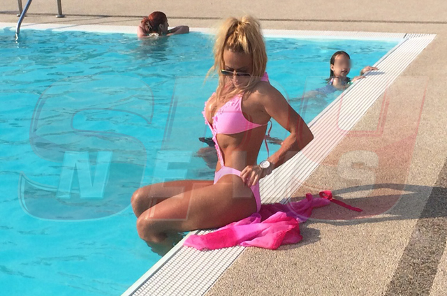 S-a unduit în apa piscinei, într-un costum roz de-ţi taie răsuflarea. Sânii imenşi şi posteriorul bombat au fost perfect puse în evidenţă de costumul deosebit. Prietenă bună a cântăreţei, Roxana Vancea şi-a asortat costumul cu cel al artistei. Fosta asistentă TV a renunţat la lumina reflectoarelor pentru a-şi dedica timpul pasiunii sale reale pentru sport.