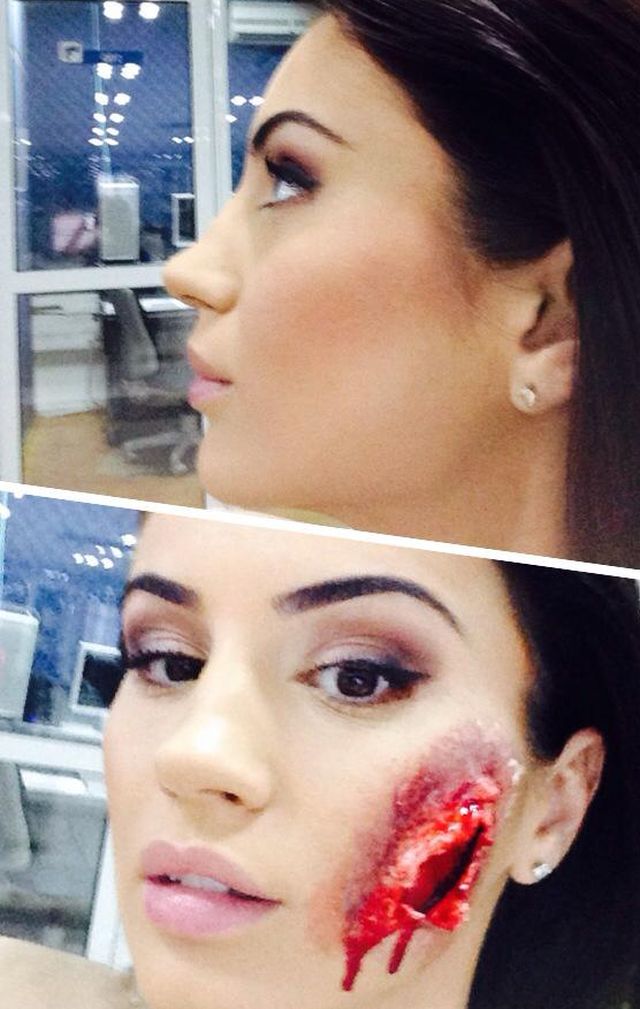 Geanina Ilieş şi-a speriat fanii după ce a postat pe o reţea de socializare o imagine în care apare mutilată. Obrazul stâng al frumoasei brunete este complet distrus, însă totul este numai o idee de machiaj pentru cei care vor să aibă o apariţie inedită de Halloween.