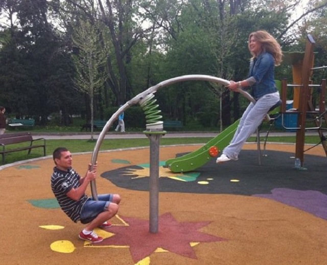 Vedeta este în extaz, s-a dus în parc şi îşi aminteşte de zilele copilăriei. Gina împreună cu un bărbat şi-au băgat o bară între picioare care era legată de un arc şi au început să se joace. Cu părul în vânt, blonda pare foarte fericită, în timp ce se înălţa spre cer. Bine că Ginuţa nu s-a accident, deoarece aparatul respectiv pare cam periculos.