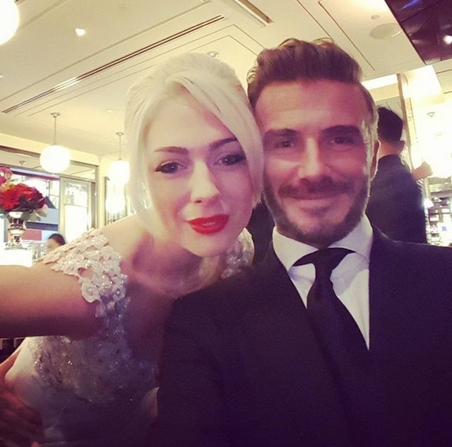 O româncă celebră, în braţele lui David Beckham. L-a văzut la un eveniment monden şi a făcut tot posibilul să "se tragă" în poză cu cel mai sexy bărbat din lume