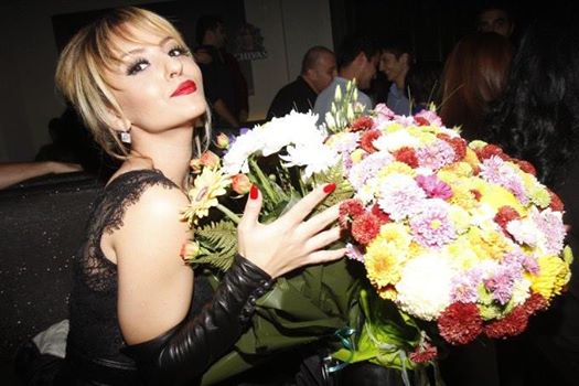 Giulia a publicat, pe contul de socializare, o imagine cu ea îmbrăcată cu o rochie de seară neagră, ţinând în mână un buchet imens de flori.