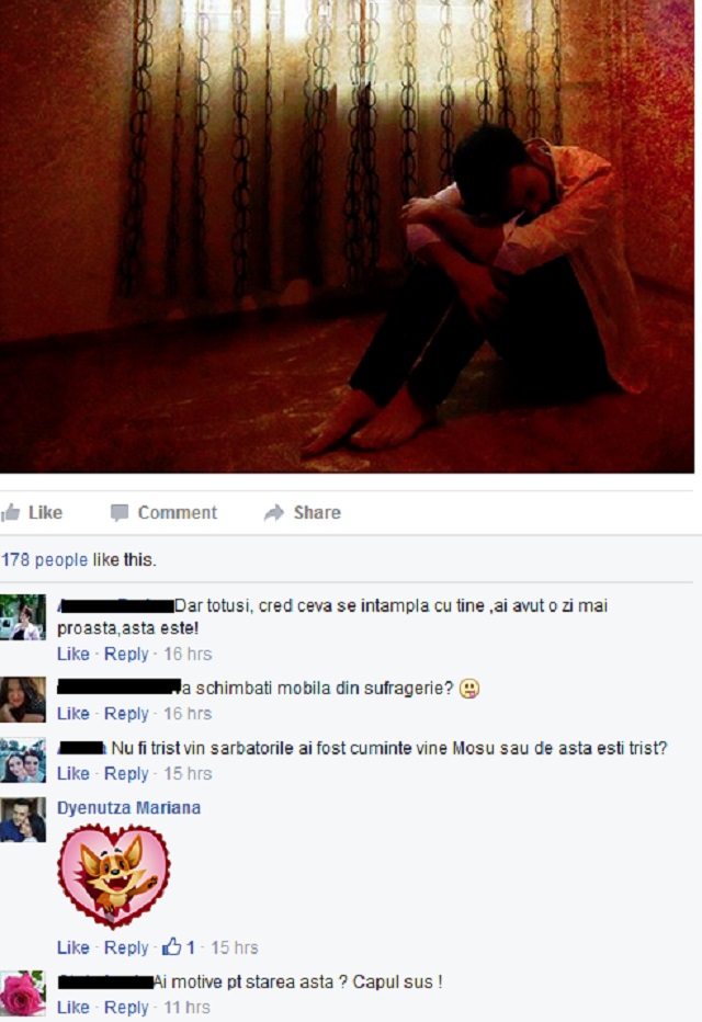 Într-una dintre ultimele fotografii pe care le-a postat pe pagina sa de socializare, Grigore pare foarte trist și a scris dedesubtul pozei:”Nu sunt vrednic să mă întristez pe mine singur, fiindcă n-am întristat dinadins nici pe altcineva”.