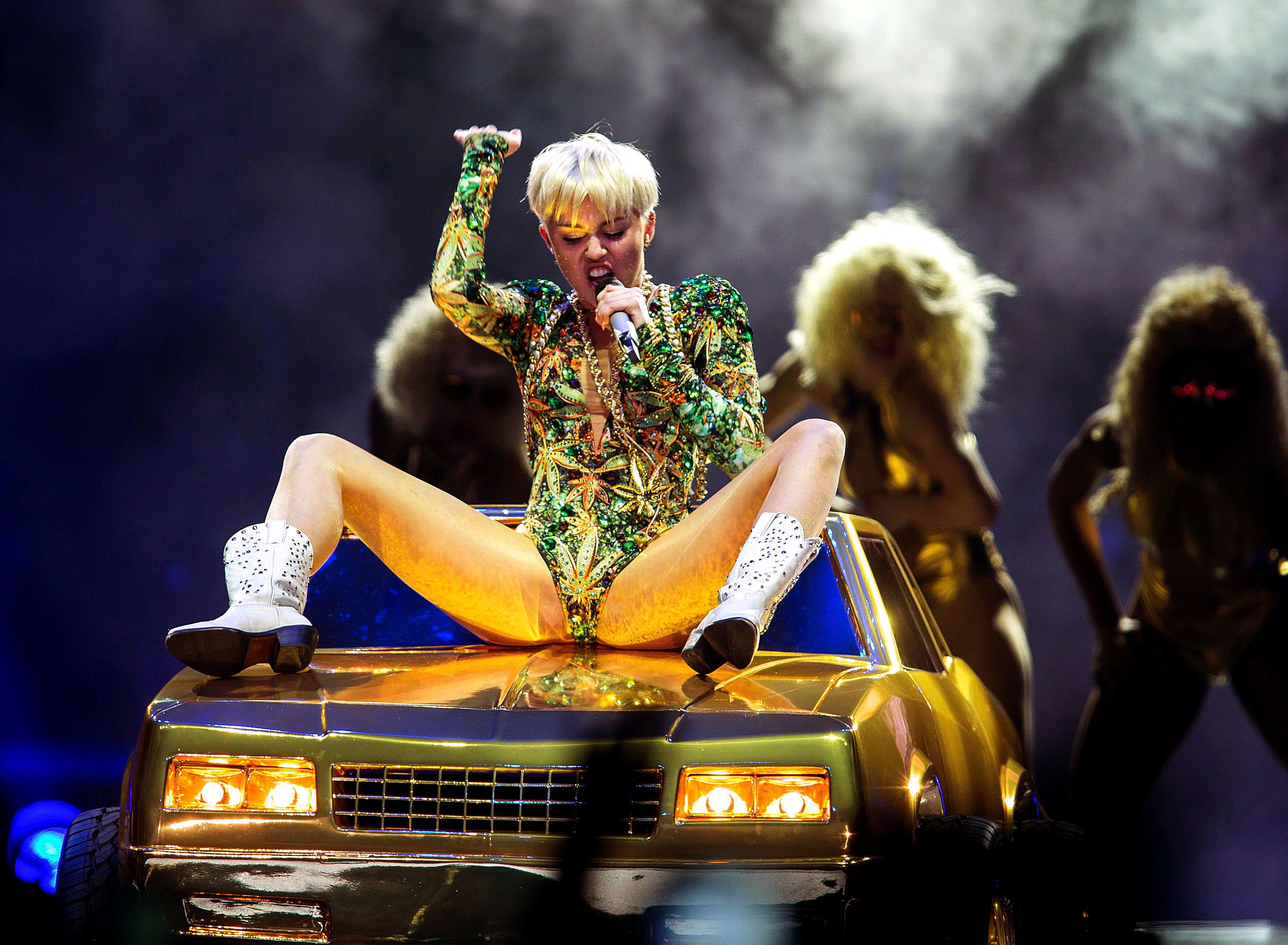 Din păcate modalităţile prin care îşi etalează maturitatea nu sunt întotdeauna cele mai potrivite. În concertele sale, Miley nu ratează nicio ocazie de a se crăci la maximum, de a se atinge pe ea sau pe alţii în zonele intime. Simulează poziţii sexuale şi se freacă lasciv de orice obiect cu forme falice.