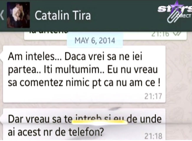 I-a făcut o propunere indecentă, iar ea l-a ameninţat că îi va spune Andei! Uite mesajele care îl compromit pe Cătălin Ţîră!