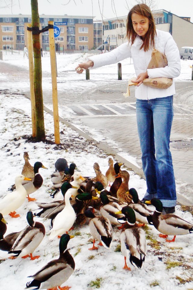 Pe timp de iarnă, vedeta hrănea raţele, în urmă cu 10 ani. Andreea apare într-o poză în care era nemachiată şi avea părul şaten. Vedeta rupea pâine la raţe şi zâmbea tandru la aparatul foto.